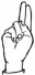 На ћирилици написано ВУКОСАВ ЛАКЧАНИН састоји се из 15 слова [?]. Исписано ћириличном једноручном азбуком за глувонеме:
